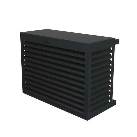 Die Decoclim Klimaanlagenabdeckung aus Aluminium schützt und verdeckt das Außengerät Ihrer Klimaanlage oder Wärmepumpe stilvoll und zuverlässig. Das moderne, dezente Design fügt sich harmonisch in Fassade, Garten oder Terrasse ein.