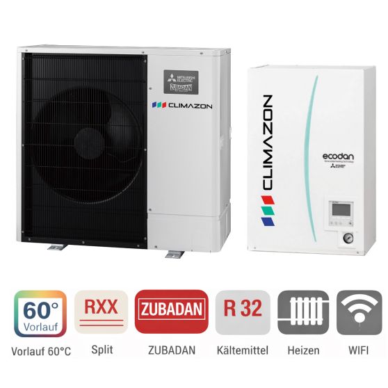 Die Mitsubishi Zubadan Hydromodul Split-Luft/Wasser-Wärmepumpe mit R32-Kältemittel ist eine effiziente und zukunftssichere Heizlösung für Einfamilienhäuser sowie Neubauten und Modernisierungen. Das optimal abgestimmte Außen- und Innengerät ist SG-Ready-zertifiziert und erreicht eine hohe ErP-Energieeffizienzklasse bis A+++ bei Niedertemperaturanwendungen.